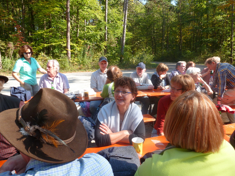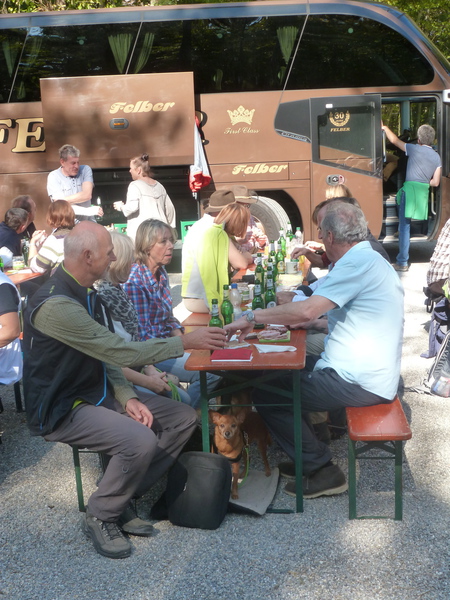Auf halben Weg nach Beckstein haben wir uns mit einer deftigen Brotzeit und einem kühlen Bier auf einem Wanderparkplatz gestärkt.